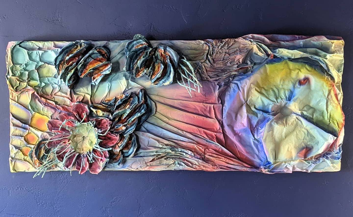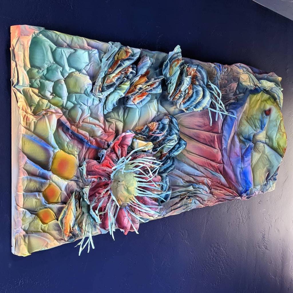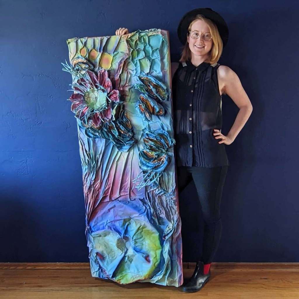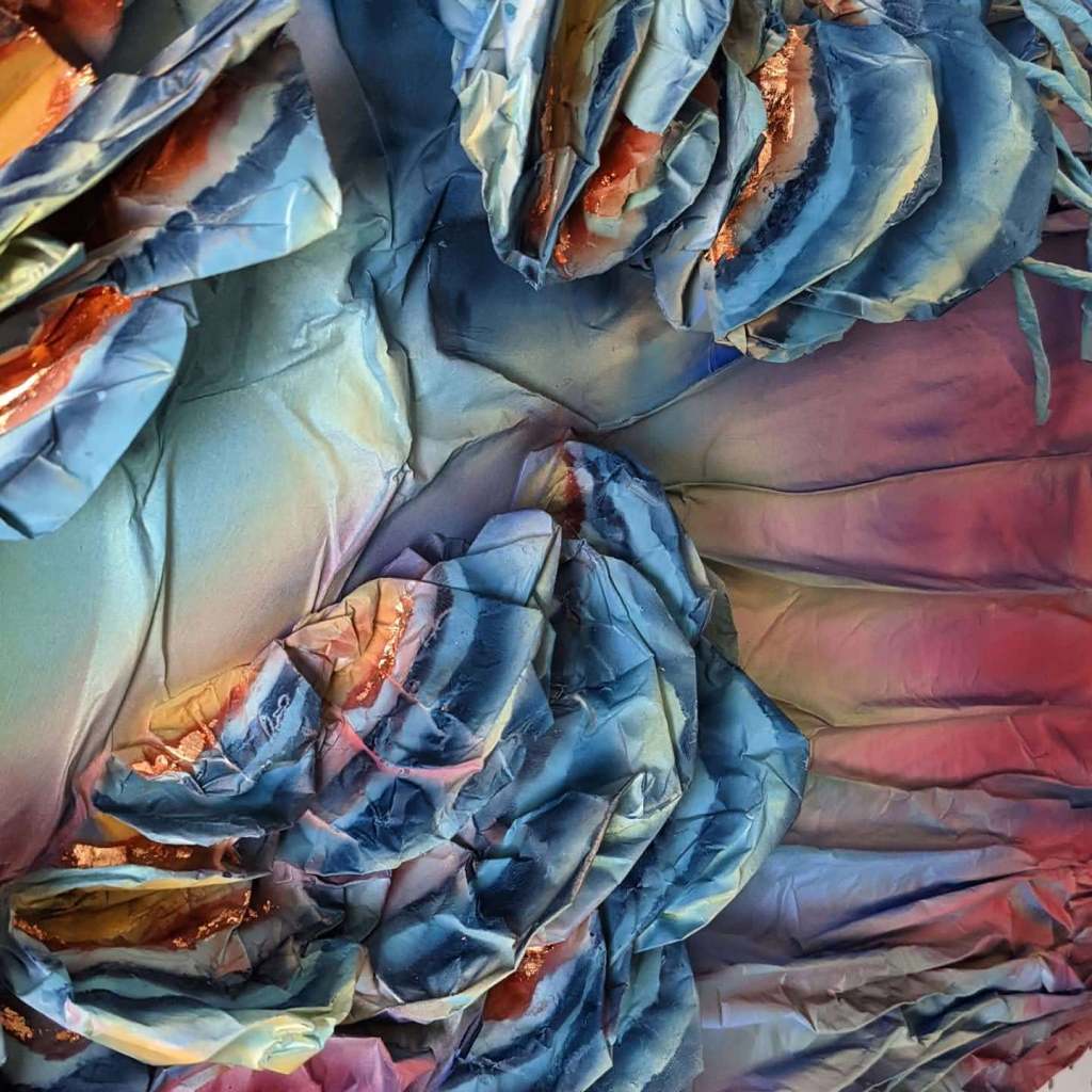 My client asked for a piece in the theme of “fresh start.” I decided to create “New Colors” for her, a piece inspired by new life, newness, transitions, turkey tail mushrooms, rainforests, close ups of butterfly wings, Fern Gully, passionfruit flowers, quartz, and refracted light. The recipient of this piece is always changing her hair color across the rainbow spectrum. Purples, greens, blues, bright reds, pinks, yellows. I used to do the same with pieces of my hair (and might again soon once the vaccine kicks in and I can hire someone to help me). Choosing and applying a new color to my hair was a way of both being my true self and becoming a new self.